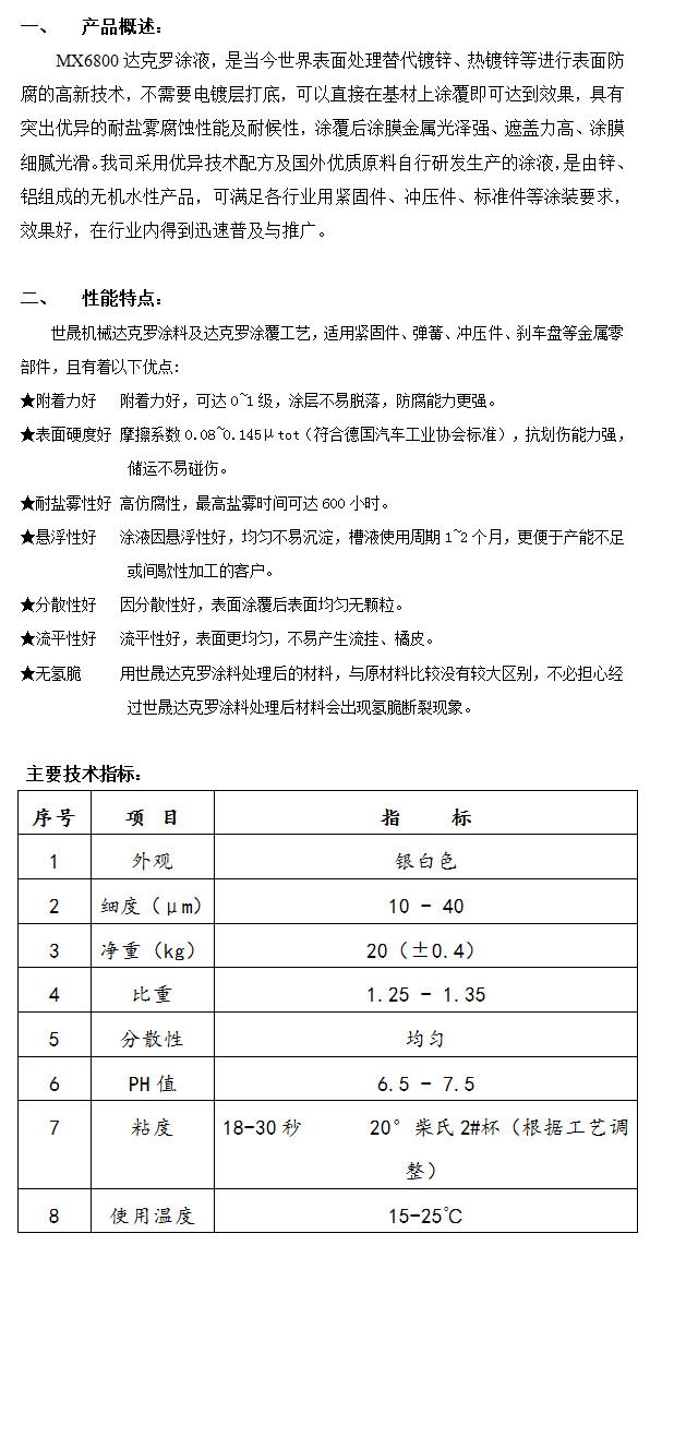 產(chǎn)品名稱:MX6800達(dá)克羅涂液