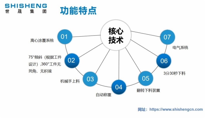 世晟集團(tuán)800系列全自動(dòng)達(dá)克羅涂覆生產(chǎn)線的設(shè)計(jì)和制造,是基于使用各種有鉻、無鉻達(dá)克羅涂料(水劑和油劑)對金屬工件進(jìn)行表面涂覆工作,也可用于其它非鋅鋁涂料的零件表面涂覆、著色或封閉加工。全自動(dòng)浸甩一體機(jī)由浸槽(SUS304)、甩干機(jī)構(gòu)(可傾斜)、槽體、槽蓋、涂液攪拌裝置、涂液回收裝置、涂液溫度調(diào)節(jié)系統(tǒng)、工件回轉(zhuǎn)輸送系統(tǒng)(升降采用氣缸)、涂液攪拌控制系統(tǒng)和料筐、小車翻轉(zhuǎn)上料裝置、伸縮式網(wǎng)帶輸送機(jī)、稱重系統(tǒng)。
